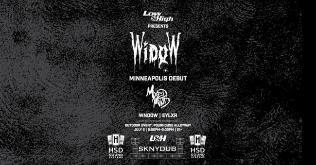 WIDOW, MixedMind, EYLXR, WNDOW Sat, Jul 2 2022, 5 - 10pm Promoter Low & High Venue Pourhouse Downtown Genre(s) Dubstep