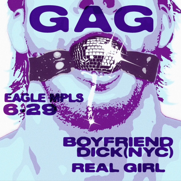 GAG: Eagle Mpls PRIDE Venue Eagle MPLS 515 Washington Ave S Minneapolis, MN 55415 United States TimeSat, Jun 29 2024, 8pm - Sun, Jun 30 2024, 2am Artists Boyfriend Dick Real Girl Genres House Electro Techno WebsiteEagle Mpls Website