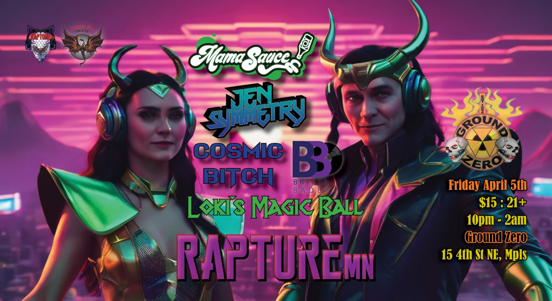 Loki’s Magic Ball at RaptureMN will highlight several of the best MPLS based DJ producers. The entire show will be amplified by an entourage of entertainers creating a spectacle of stage show including projected visuals, laser lights, LED's, Fire performance, and aerial acrobatics.